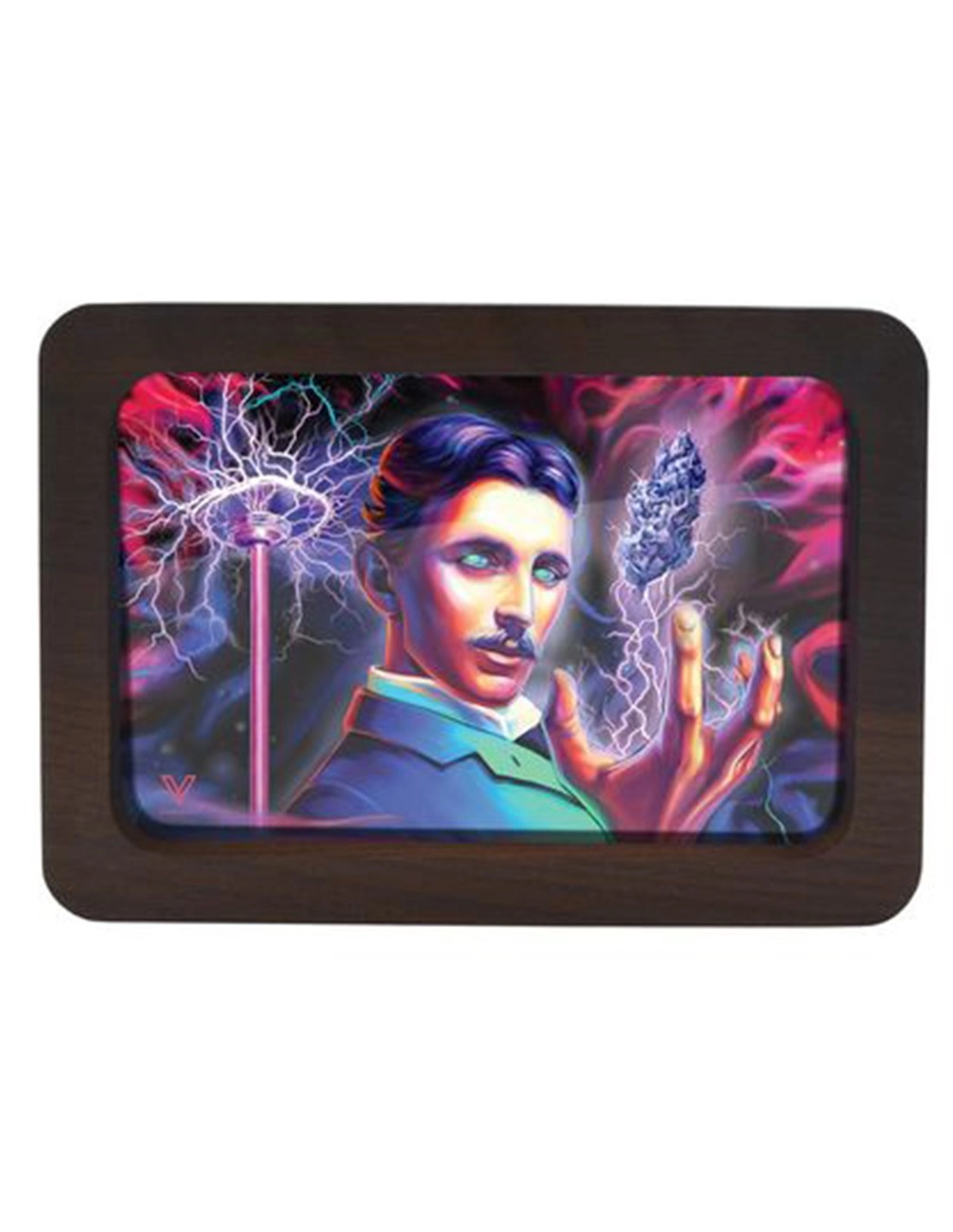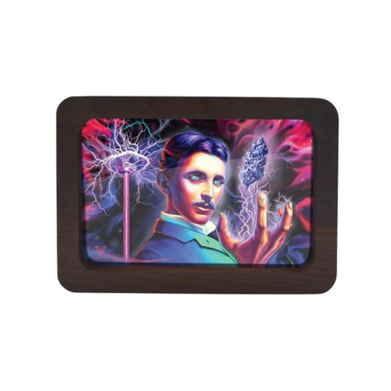Plateau à Mix V Syndicate-3D en bois avec un effet hologramme et une image qui représente Nicolas Tesla