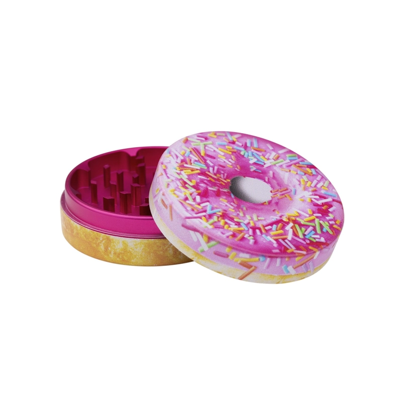Grinder V Syndicate en forme de macaron et de donuts en deux parties sans tamis pour le pollen et mesurant 63mm de diamètre