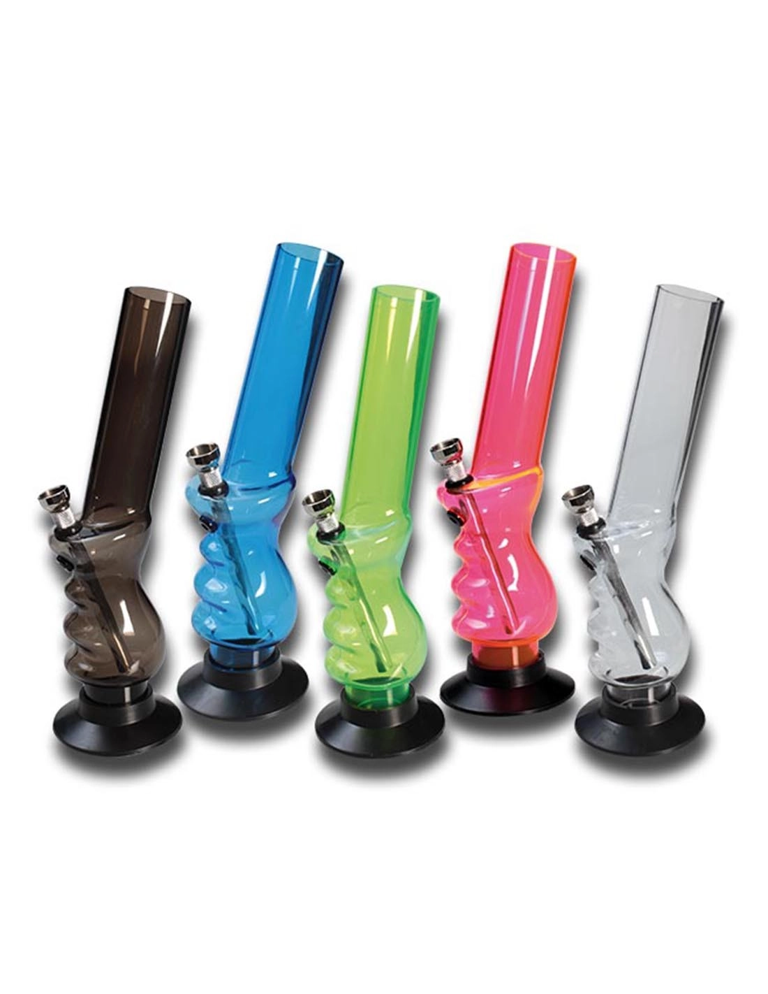Bong en plastique de couleur noire mesurant 26cm de hauteur avec un foyer en métal dévissable et un trou sur le côté pour le tirage
