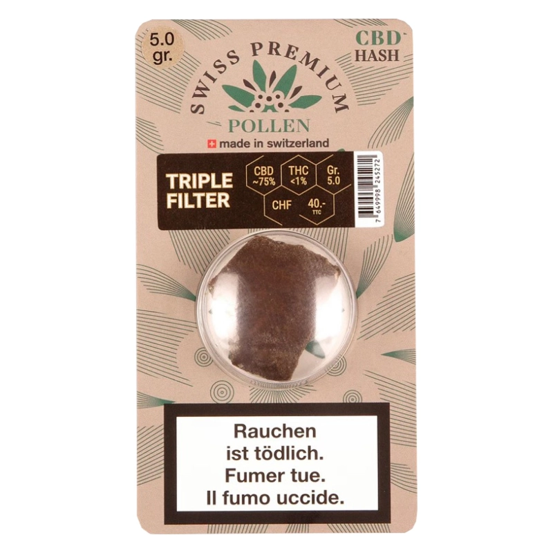 Ce "Triple Filter" peut atteindre des taux allant jusqu’à 80% de CBD, c’est un produit puissant. Hachez finement pour une meilleure consommation. Faire attention au dosage.