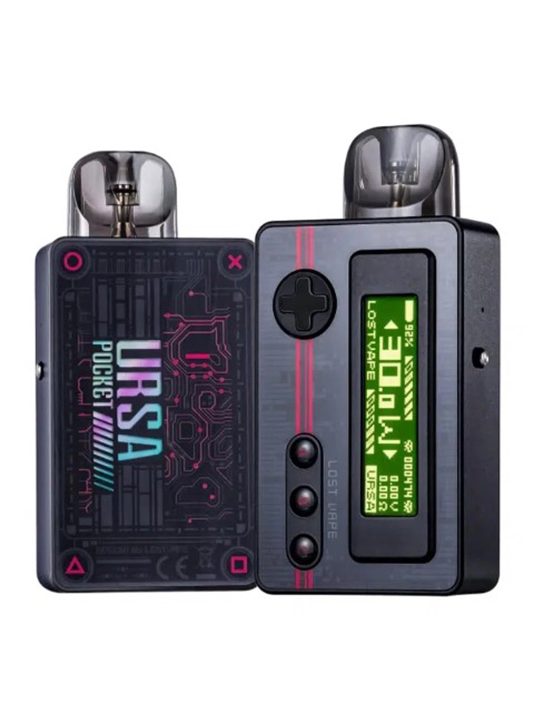 Le kit Ursa Pocket est le tout dernier Pod Mod de chez Lost Vape. Il arbore un look retro gaming, nous rappelant nos jeunes années de gamer. Le Ursa Pocket dispose d'une autonomie de 1200mAh ce qui vous assurera une journée de vape. La batterie se rechargera en moins d'une heure grâce au port USB-C. Sur sa face, vous aurez un écran OLED de 1,7". Ce dernier vous indiquera toutes les informations nécessaires au bon fonctionnement du pod. De plus, la Ursa Pocket embarquera 3 jeux vidéo et aura une puissance de 30W.