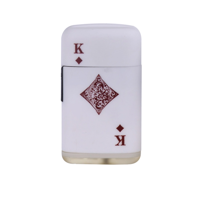 Briquet Torche rechargeable dans une coque en plastique avec un roi de carreau sur une des faces.