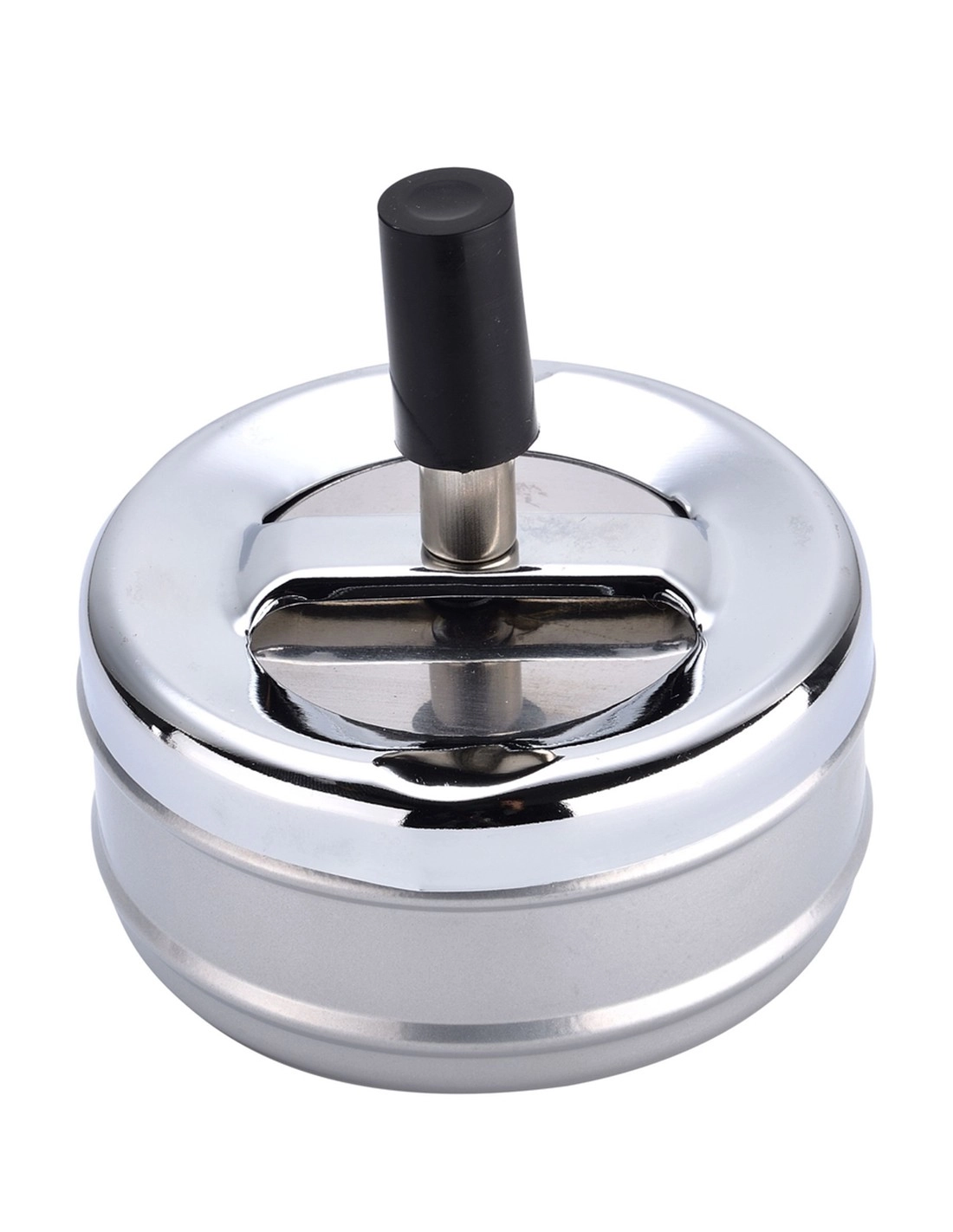 Cendrier Poussoir de 9.5cm de diamètre en métal de la marque Champ High avec un poussoir qui permet d'enfermer les cendres et les mégots dans le cendrier en limitant les odeurs.