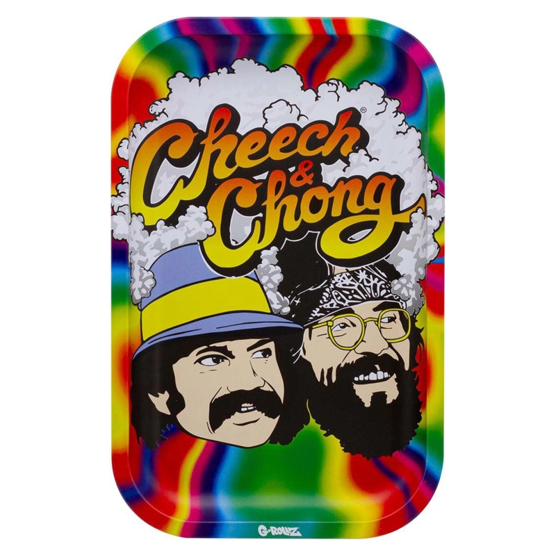 Plateau à mix en métal de marque G Rollz multicolors avec une image de Cheech et Chong