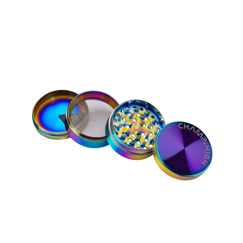 Grinder en métal de 4 parties incluant un tamis pour récolter le pollen de vos herbes préférées. Ce magnifique grinder de couleur arc-en-ciel est également doté de dent en forme de diamant qui sont connu pour hacher correctement les herbes.
