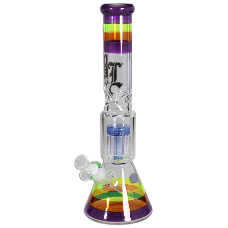 Ice bong Black Leaf avec un percolateur central mesurant 40cm de haut. Ce bong en verre borosilicate de 7mm sera beaucoup plus résistant qu'un autre bong plus fin. Le percolateur vous aidera à avoir une fumée plus douce et un goût améliorer par rapport à un bong classique.