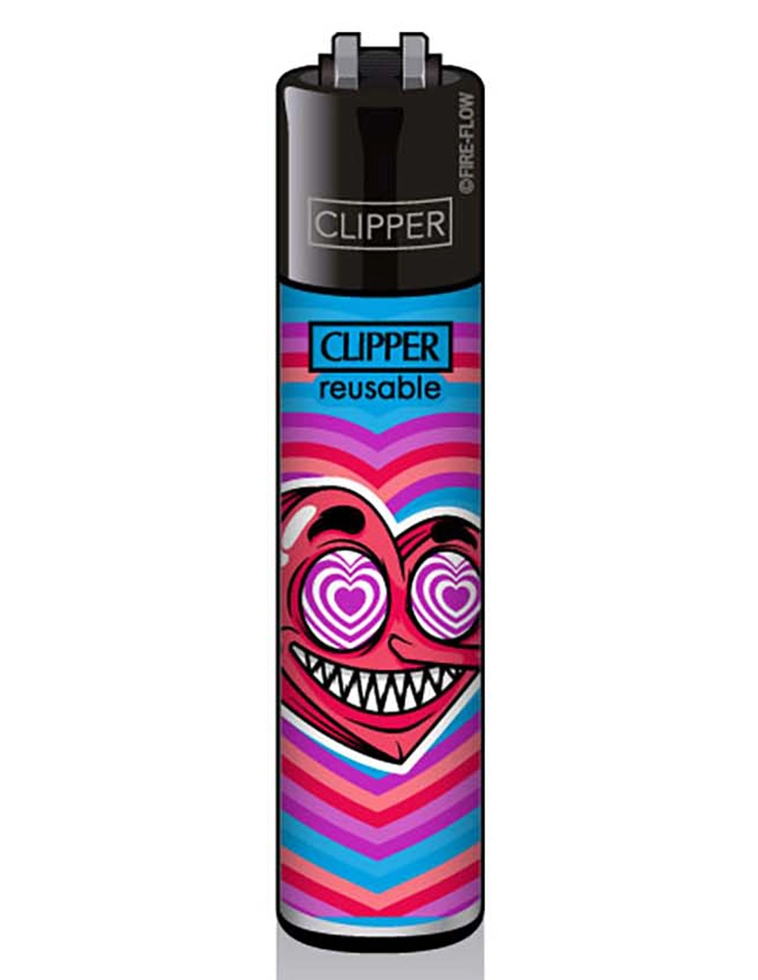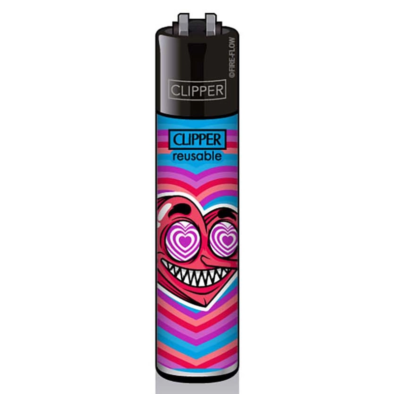 Briquet Clipper de couleur avec cœur maléfique au long nez et comme tous les Clipper, vous pourrez changer la pierre et recharger avec du gaz prévu à cet effet
