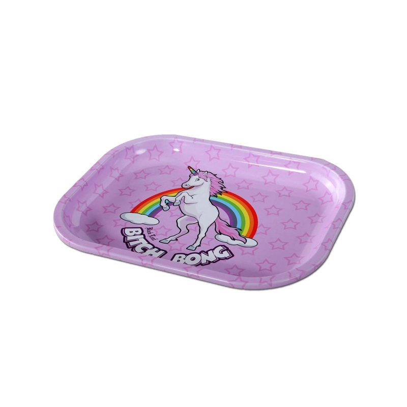 Plateau à Mix Black Leaf Bitch Bong 18x14cm de couleur violet avec une licorne avec une crinière rose et une corne arc en ciel