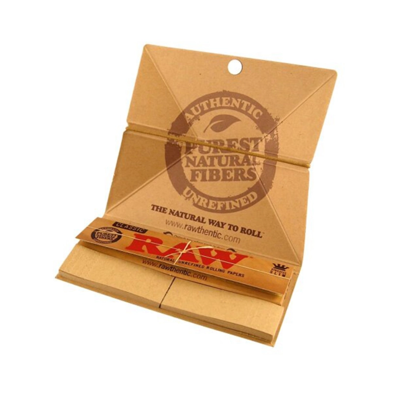 • Carnet de feuilles RAW Classic : 32 feuilles avec collant à base de sucre constituées de fibres naturelles qui offrent une combustion lente et régulière. (110mm x 44mm)