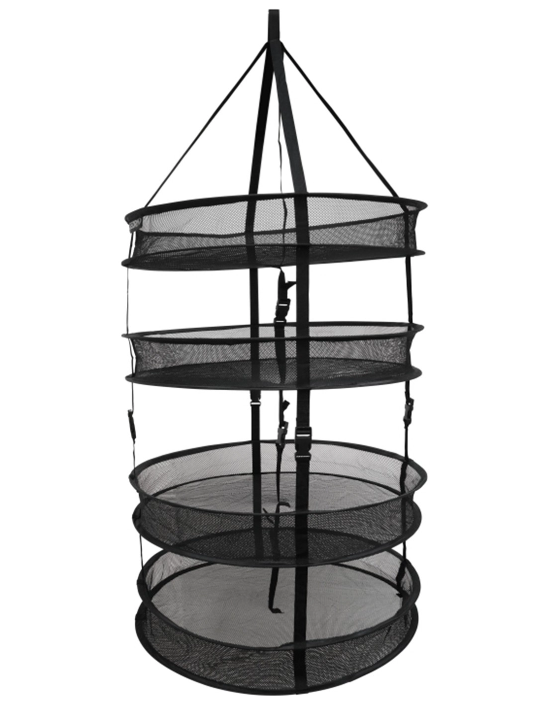 Filet de séchage Pure Dry modulaire rond 55cm de diamètre et 21cm entre les différents étages fabriqué en mesh et permettant de laisser circuler l'air et ainsi sécher correctement vos plantes. Comme le filet est doté de fixations, vous pourrez ajouter ou retirer des étages selon vos besoins.