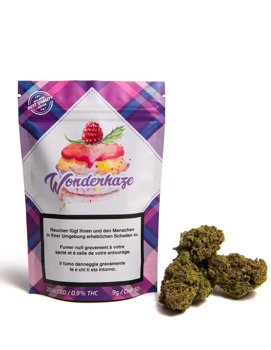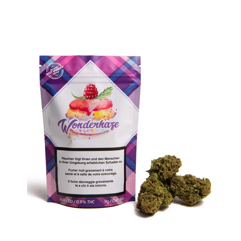 La fleur de CBD Wonderhaze d'UrbanPharm CBD réunit toutes les bonnes caractéristiques que doivent avoir les fleurs de cannabis ! La fleur de CBD Wonderhaze d'UrbanPharm CBD réunit toutes les bonnes caractéristiques que doivent avoir les fleurs de cannabis ! Avec sa structure dure comme de la pierre et son manteau blanc de trichomes résineux, elle attire l'attention et te fascinera immédiatement.
