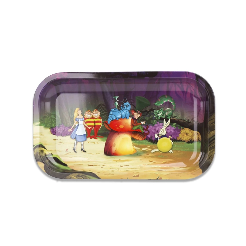 Plateau à Mix V Syndicate en métal une image qui représente les personnages du film Alice au pays des merveilles et ayant comme dimensions 27 x 16 x 2.5cm