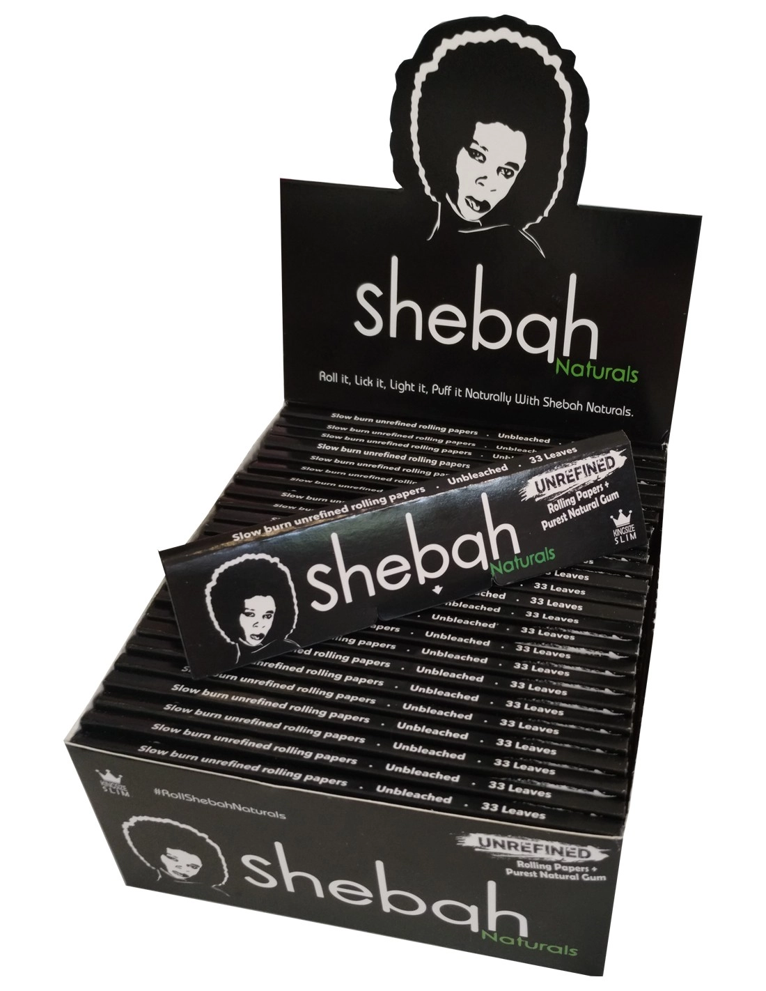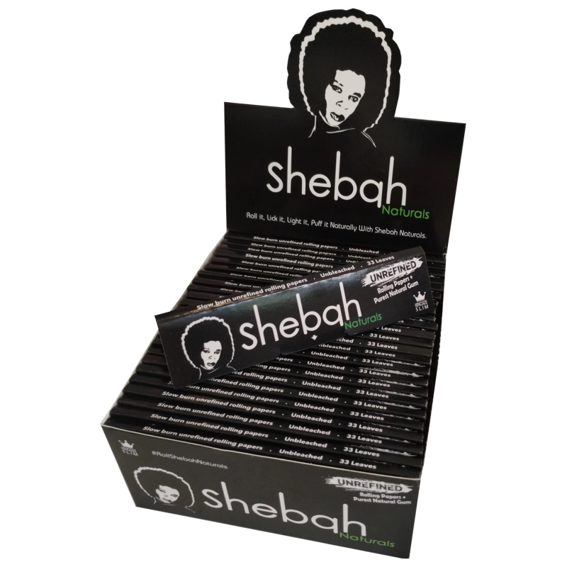 Papier à rouler king size de la marque Shebah en version slim. Ces feuilles naturelles ont l'avantage d'utiliser une colle naturelle et ces dernière ne sont pas blanchies avec du chlore et l'arôme est meilleur qu'avec du papier qui à été blanchie et de plus, elles ont une combustion lente.