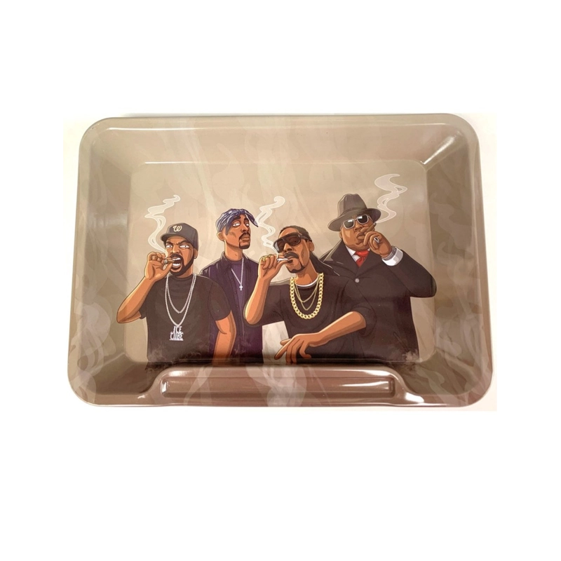 Plateau à mix de la marque Wises Skies d'une dimensions de 14 x 18cm avec une image représentant des rappeurs US très connus et ce plateau vous seras très utile pour éviter de mettre de la mix partout.