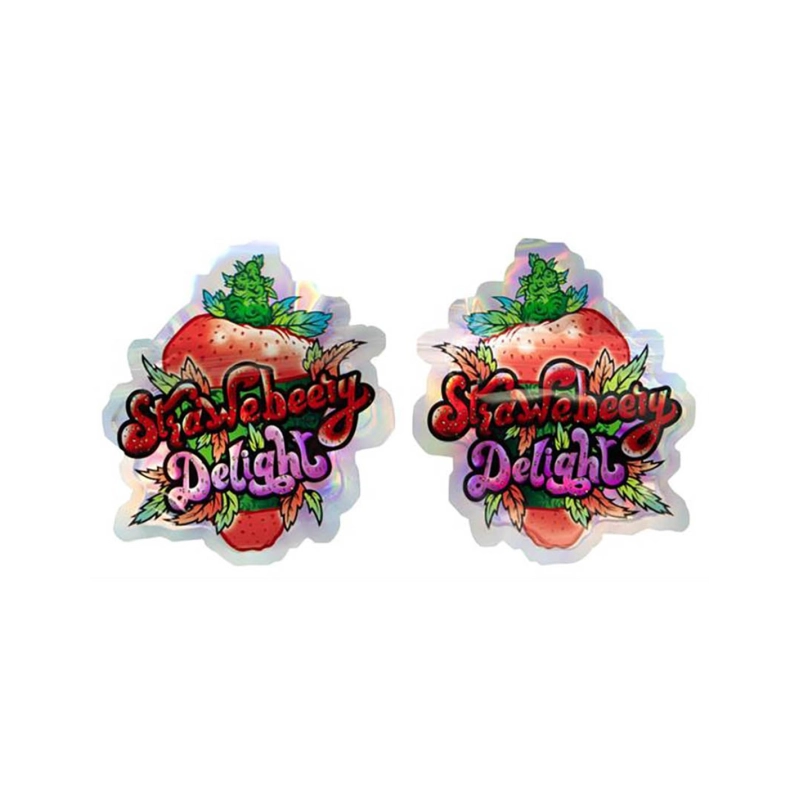 Des sachets à fermeture pression et hermétique, fabriqués à partir d'un film polyester métallisé, également appelé sachet Mylar. Imprimés avec des motifs amusants, dont certains sont basés sur des strains populaires.