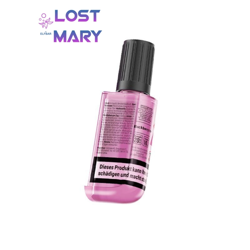Recharge de 10ml avec liquide à 2% de sel de nicotine pour les puffs Lost Mary BM6000 à l'arôme de mûres ice que vous pourrez mettre sur votre puff jusqu'à ce que la résistance de votre BM6000 soit brûlée.