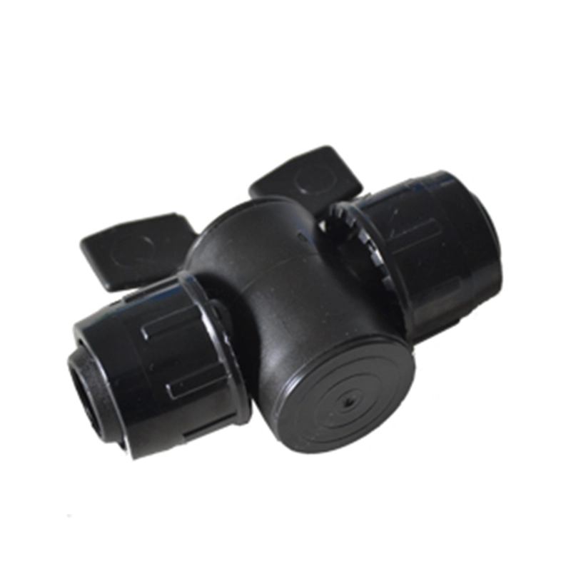 Cette vanne à poignée papillon est adaptée au réseau de goutte-à-goutte 25 mm.