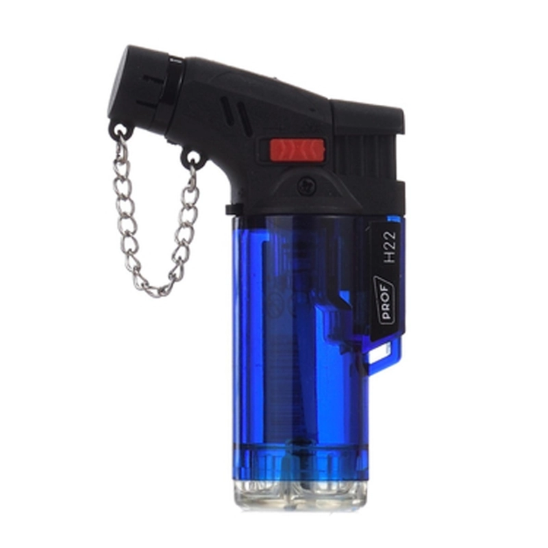 Briquet à flamme bleu avec un capuchon de protection qui vous sera très utile pour allumer vos cigarettes en cas de forts vents ou pour chauffer vos foyers à huile, vous pourrez également régler l'intensité de la flamme.