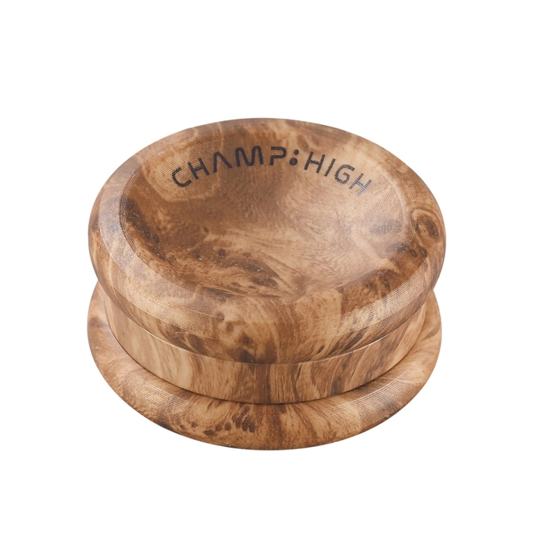 Grinder en 2 parties avec un diamètre de 50mm sans tamis à pollen qui imite à la perfection le bois mais contrairement au grinder en bois habituels, l'intérieur de celui-ci est entièrement en métal.