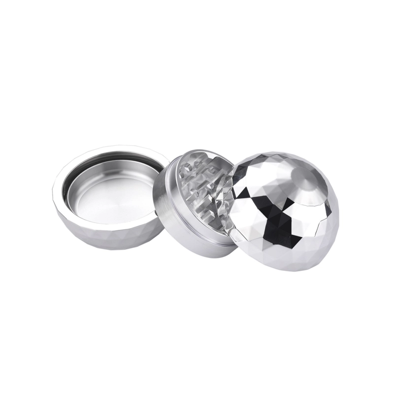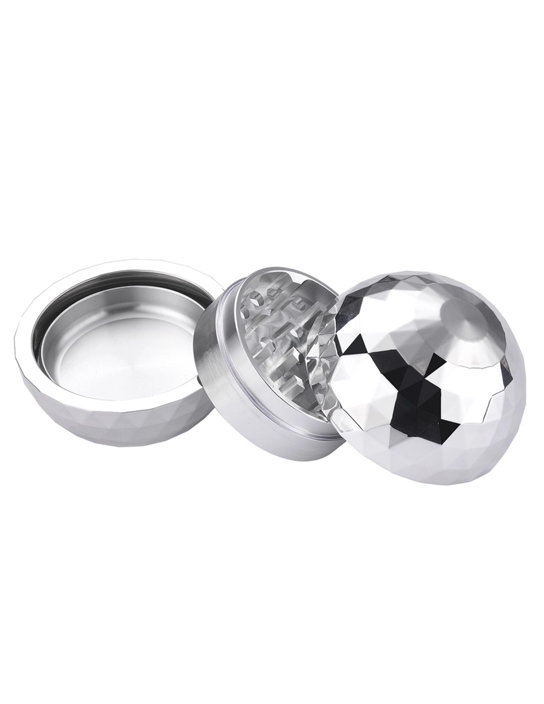 Grinder Boule de marque Champ High avec un diamètre de 65mm en forme de boule de disco à facette. Ce grinder est en 3 parties dont un pour récupérer votre herbes préférées et grâce à ses dents vos herbes seront parfaitement hachées.