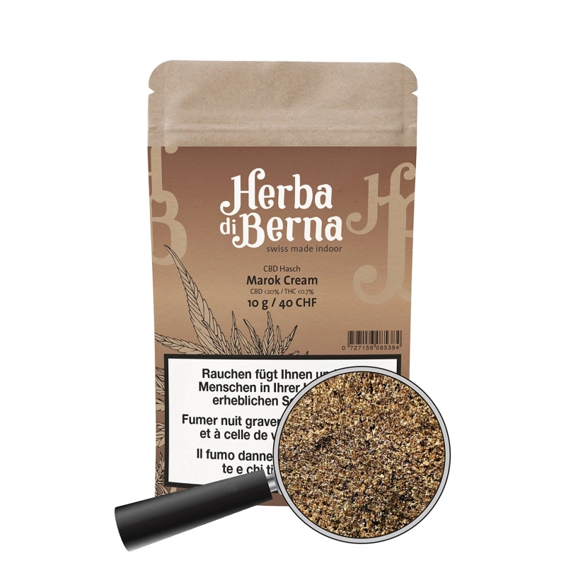Le haschisch CBD légal Maroc Cream de Herba di Berna est aussi proche que possible de l’original marocain en termes de goût et de qualité. Le goût rappelle l’encens et un soupçon de bois de santal. Le haschisch Marok Cream n’est pas cultivé de manière biologique.