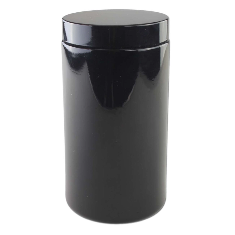 Récipient en verre d'une contenance d'un demi litre violet avec couvercle à vis en plastique pour une conservation parfaite des herbes. Le verre violet protège de manière optimale le contenu de la lumière nocive, qui accélérerait le processus de décomposition moléculaire.
