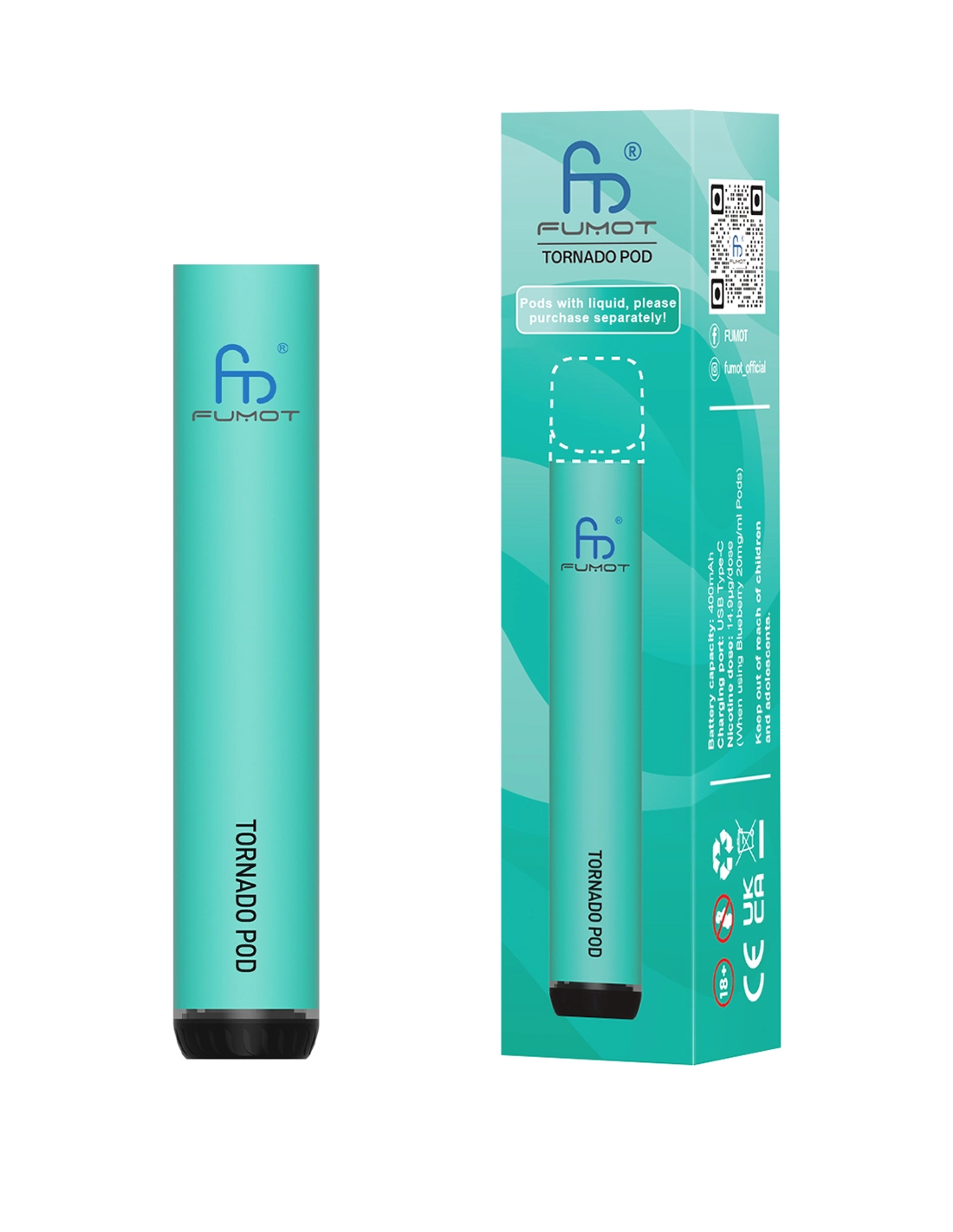 Batterie RandM Tornado Pods d'une autonomie de 400mAh rechargeable en USB-C que vous pourrez utiliser avec les cartouches RandM Tornado Pods pré remplis de 2ml avec du liquide fruité contenant 2% de sel de nicotine.