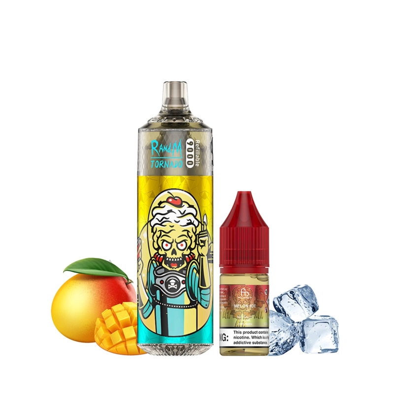 Ces nouvelles Tornado 9000 sont livrées avec un réservoir de 10ml et une bouteille de liquide Fumot RandM Tornado de 10ml à 2% de sel de nicotine, mais vous pouvez acheter séparément une deuxième bouteille de 10ml afin de remplir complétement votre puff une fois qu'elle sera vide et ainsi profiter d’environs 9000 tirées.