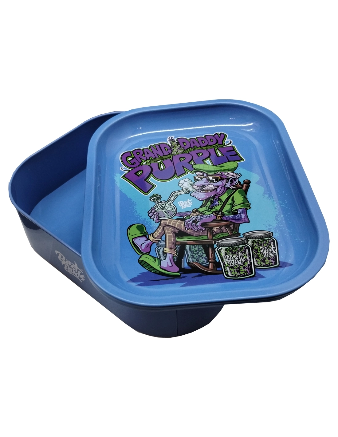 Produit par Best Buds, ce plateau à rouler présente un motif Grand Daddy Purple qui offre une identité visuelle audacieuse et reconnaissable.
