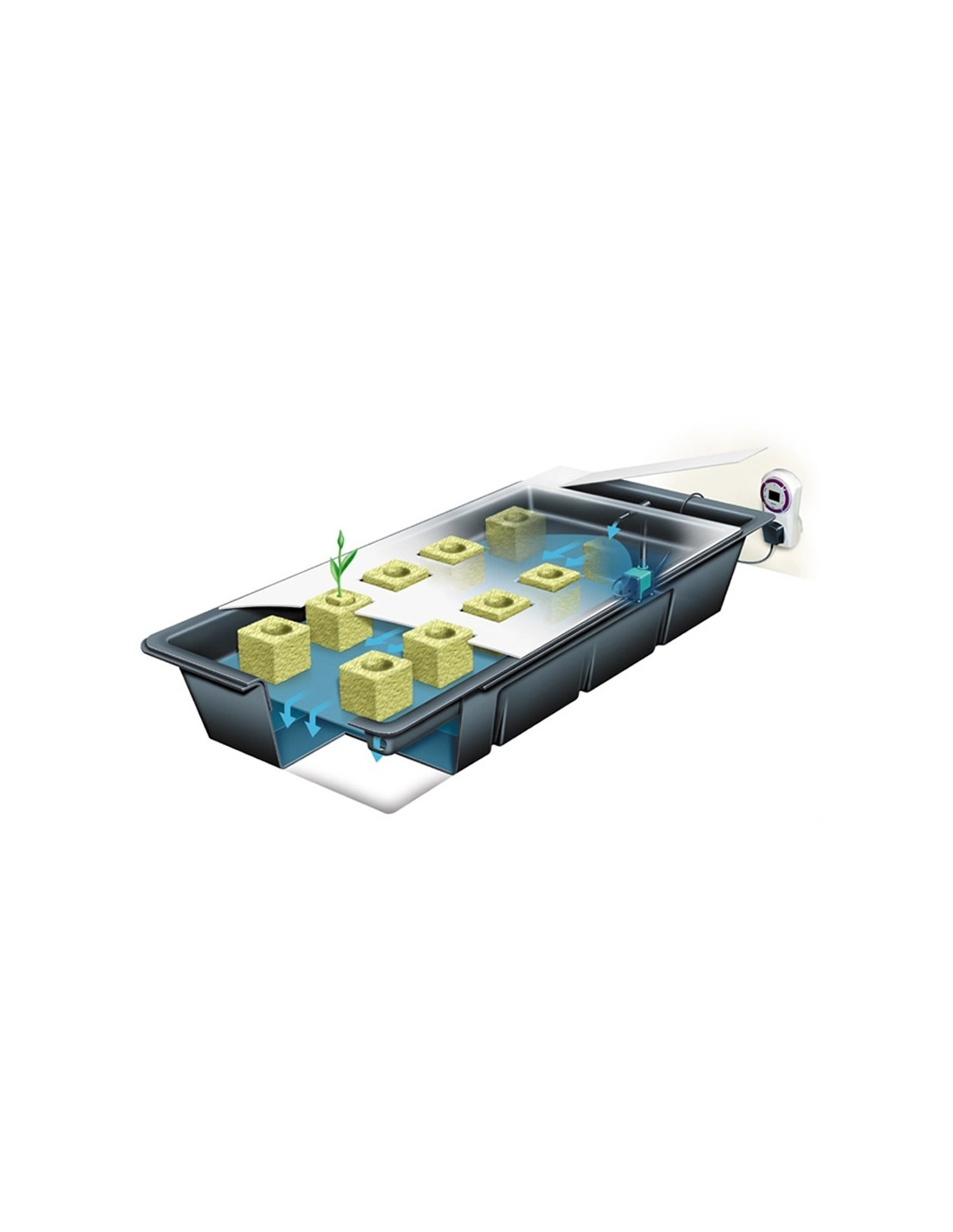 Système de culture hydroponique de type NFT de la marque Nutriculture qui vous permets de haut rendement car les racines ont beaucoup de place pour évoluer et l'apport en oxygène est illimité.