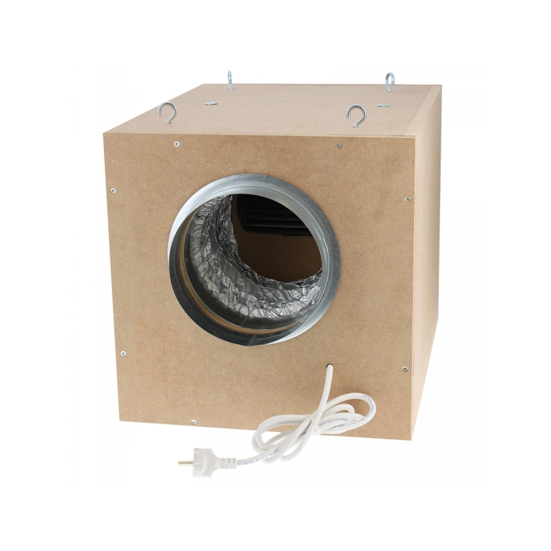 Le caisson de cet extracteur insonorisé 250m3/h est fait de plaque MDF recouvertes à l'intérieur de mousse polyuréthane pour l’isolation phonique.
