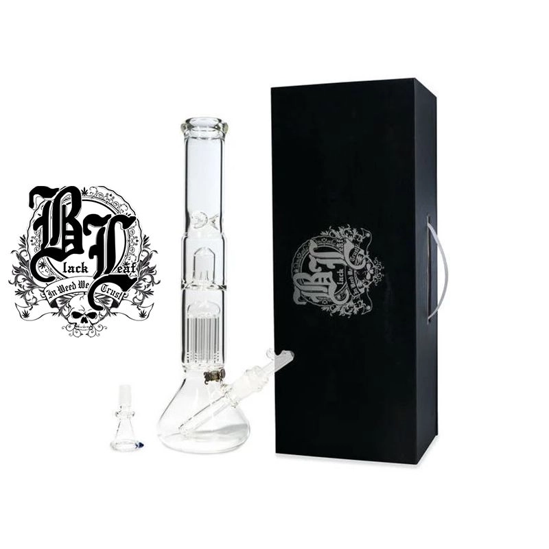 Bong percolateur en coffret Black Leaf d'une hauteur de 36cm et d'une épaisseur de 5mm avec foyer à huile en plus du foyer classique.