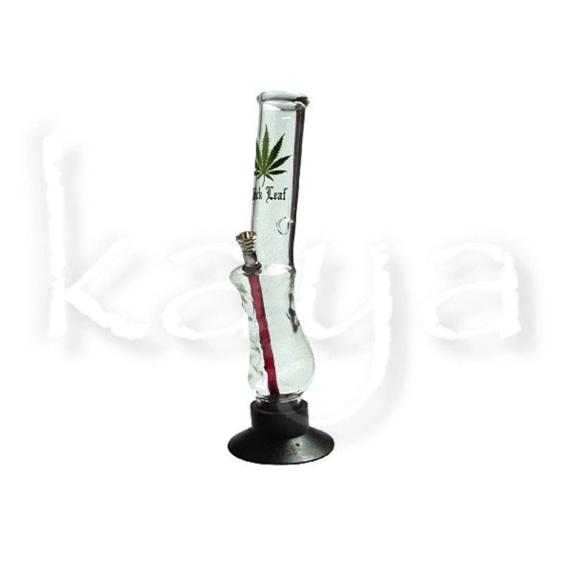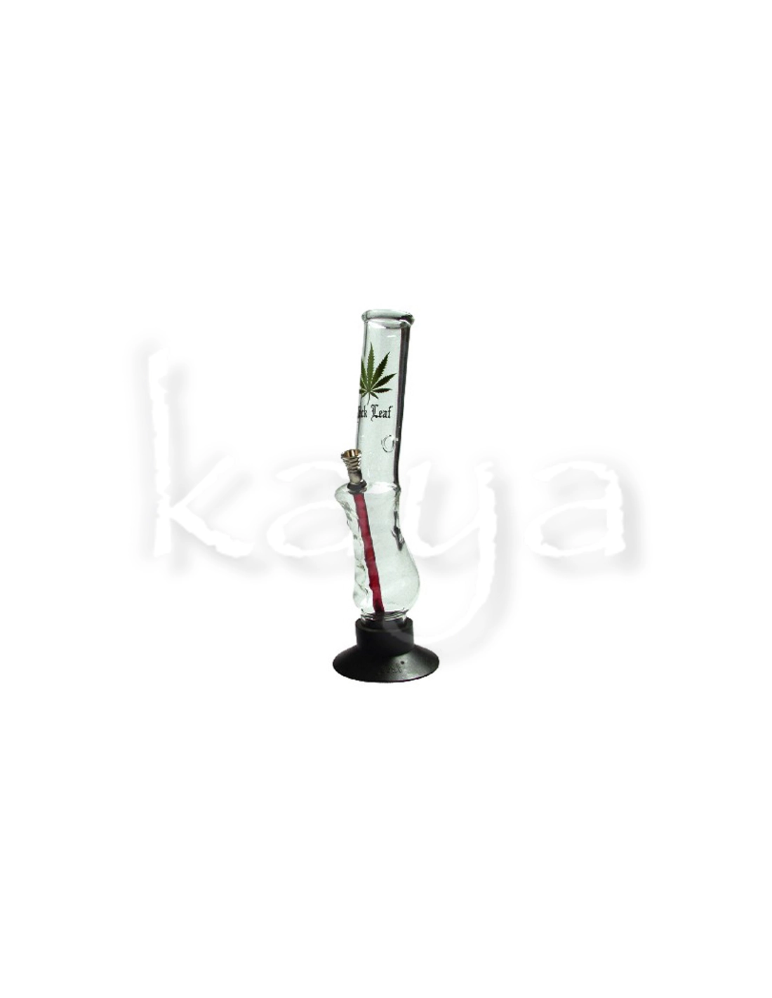 Bong Black Leaf en verre transparent "Joystick" avec feuille de cannabis verte.