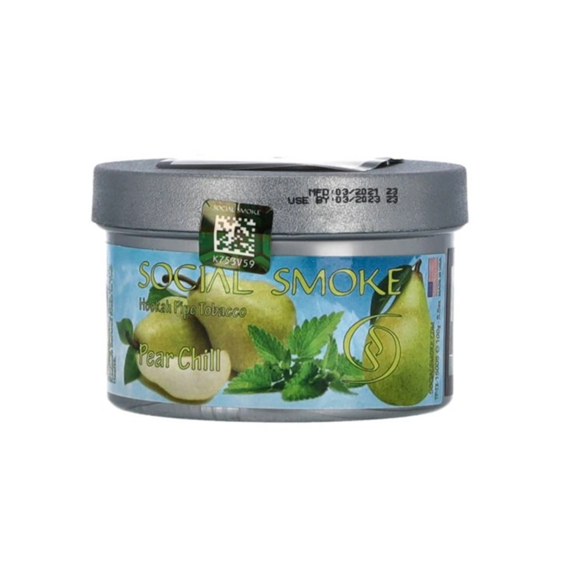 Tabac Américain à chicha-shisha de marque Social Smoke à l'arôme de poire et de menthe.