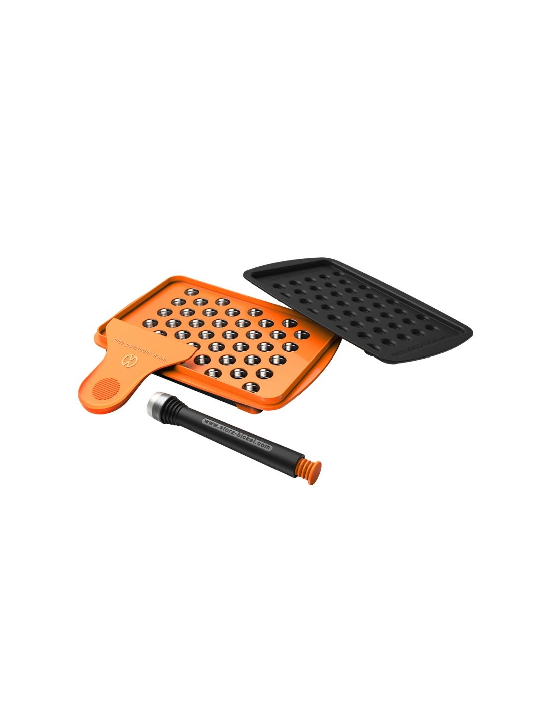 Le Kit de Remplissage pour 40 Capsules Doseuses a été développé pour remplir un grand nombre de Capsules Doseuses simultanément. Le Poussoir fourni facilite en outre la fermeture des Capsules Doseuses.
