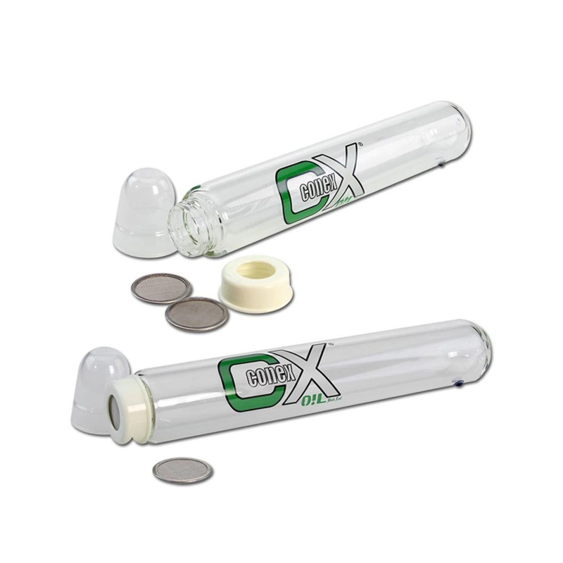 L'extracteur 'CONEX' de 'OIL Black Leaf' est fabriqué à partir d’un verre résistant aux températures extrêmes.. Il extrait les concentrés les plus fins tels que l'huile ou la cire à l'aide de gaz. Nous recommandons l’utilisation d’éther diméthylique (par exemple, «DEXSO D.M.E.»), car il est moins explosif plus efficace.