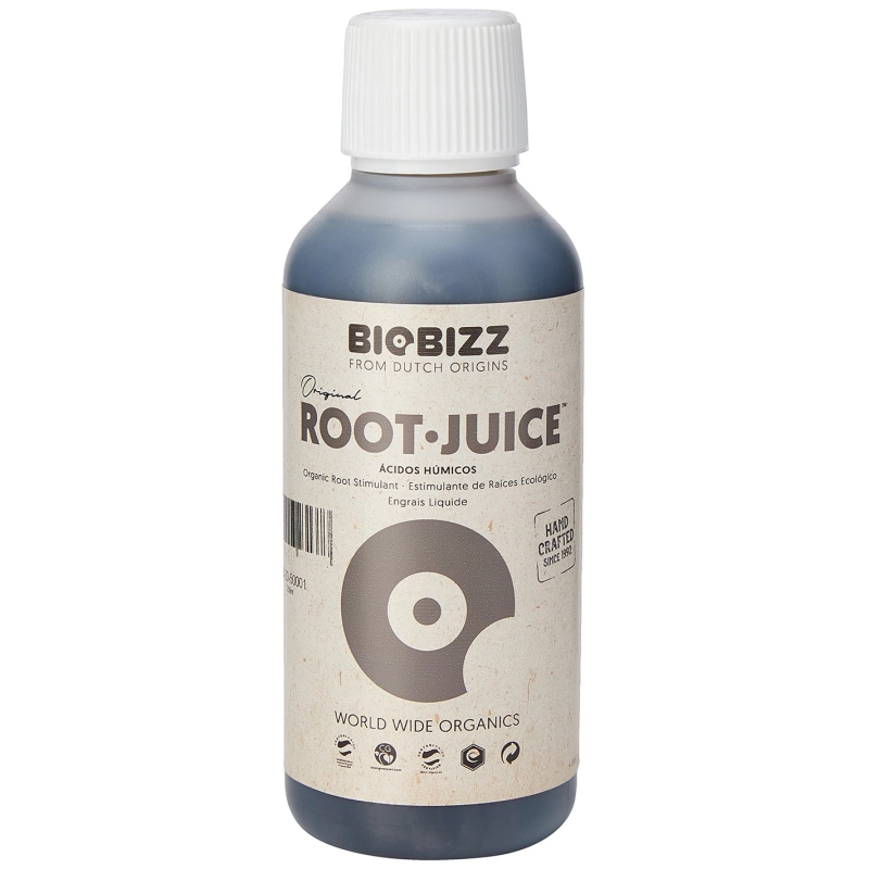 Si vous utilisez les substrats All·Mix ou Light·Mix, il est préférable de nourrir vos plantes avec Root·Juice au cours de la première semaine ou des premières semaines, c’est-à-dire au cours de la période cruciale pour l’enracinement. Biobizz vous recommande d’utiliser une dose de 1 à 4 ml de Root·Juice par litre d’eau.