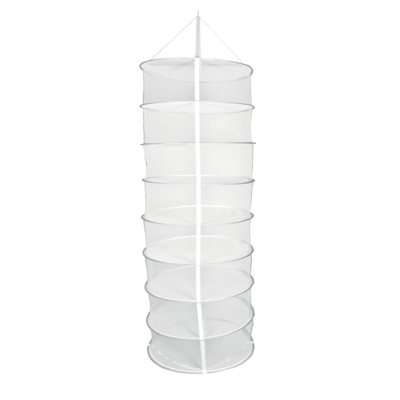 Filet de séchage d'un diamètre de 60cm à suspendre dans votre box de culture afin de sécher votre récolte. Ce filet est composé de 8 étages permettant de faire sécher votre récolte de CBD, il suffit de déposer les têtes et de les retourner de temps à autre.