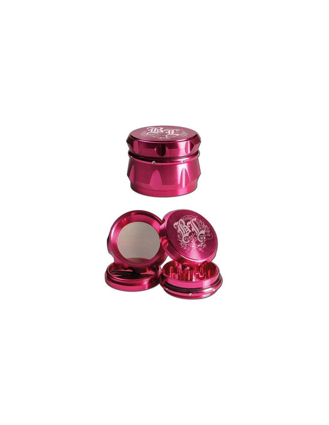 Grinder en forme de couronne rose de marque "Black Leaf" en 4 parties métallique avec tamis de récupération.