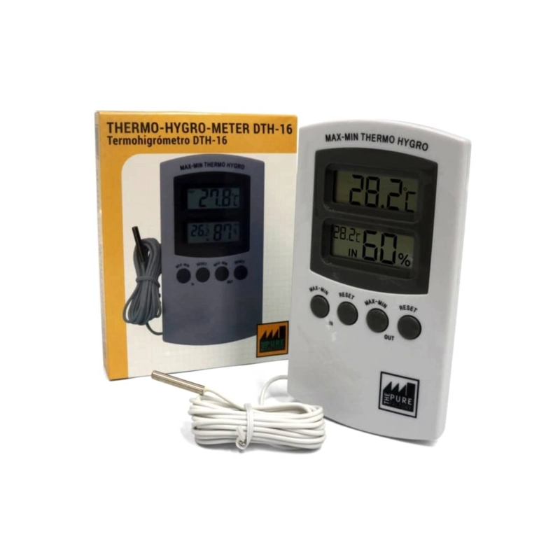 Thermo - hygromètre que vous pouvez utiliser dans votre box de culture afin de pouvoir contrôler la température et l'humidité présente dans votre espace de culture. La sonde permet quant à elle de mesurer l'extérieur de votre box.