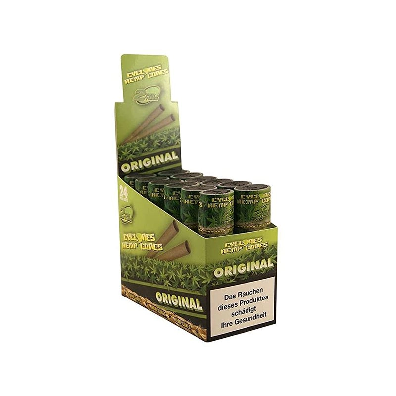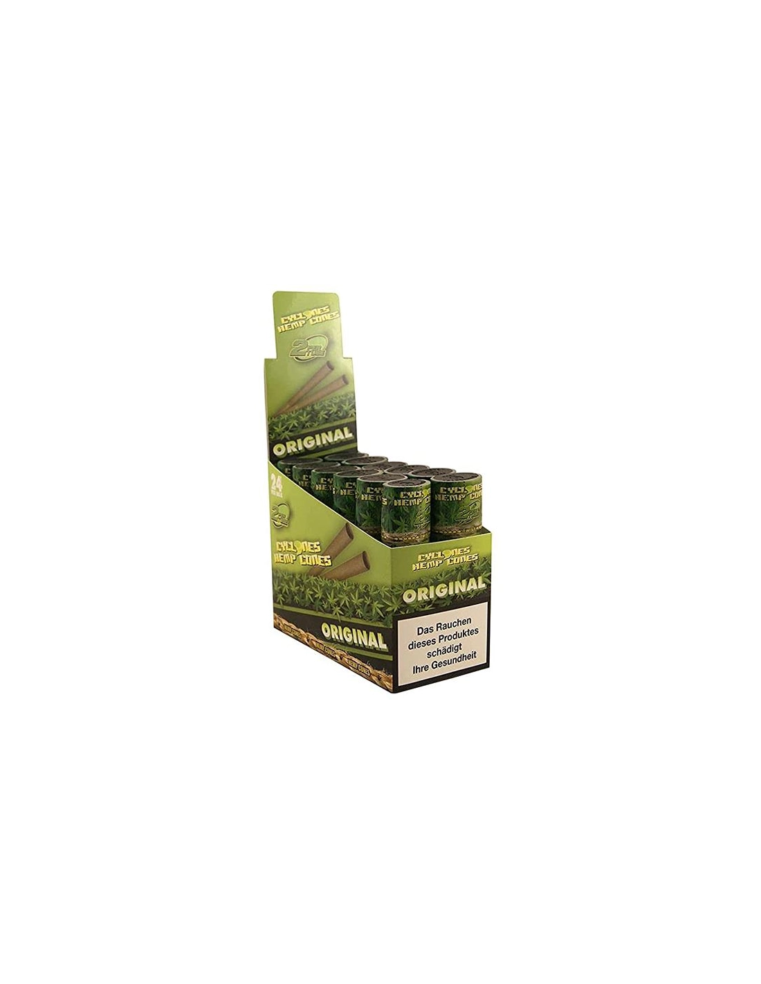 Les Cyclone Hemp Cones sont des blunts pré-roulés qui contrairement au blunts habituels ne sont pas conçu avec des feuilles de tabacs mais de chanvre pour un goût encore plus naturel.