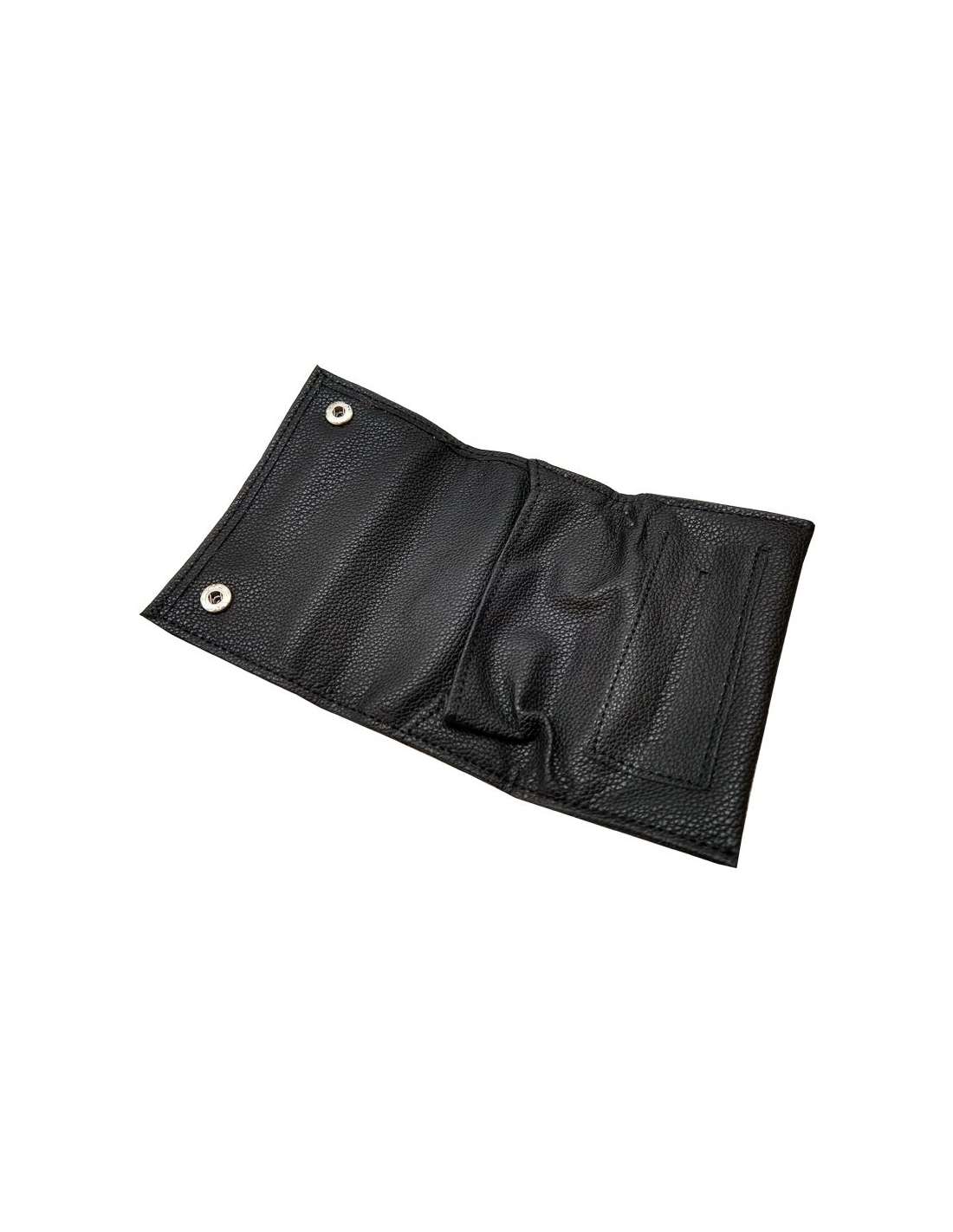 Petite blague à tabac avec un emplacement pour le tabac, un autre pour les feuilles de taille Queen Size maximum et l'arrière de la pochette est munie d'une poche avec une fermeture éclaire.