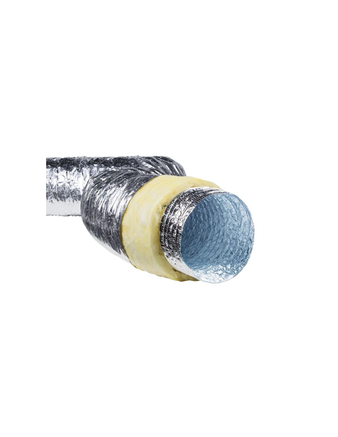 Gaine flexible en aluminium 125mm avec isolation en laine de verre pour atténuer le bruit de vos appareils de ventilation.