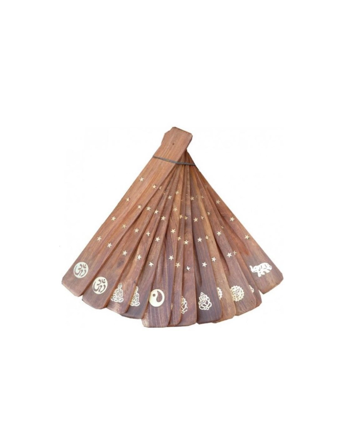 Porte encens en bois permettant de brûler un baton d'encens avec motif doré en décoration