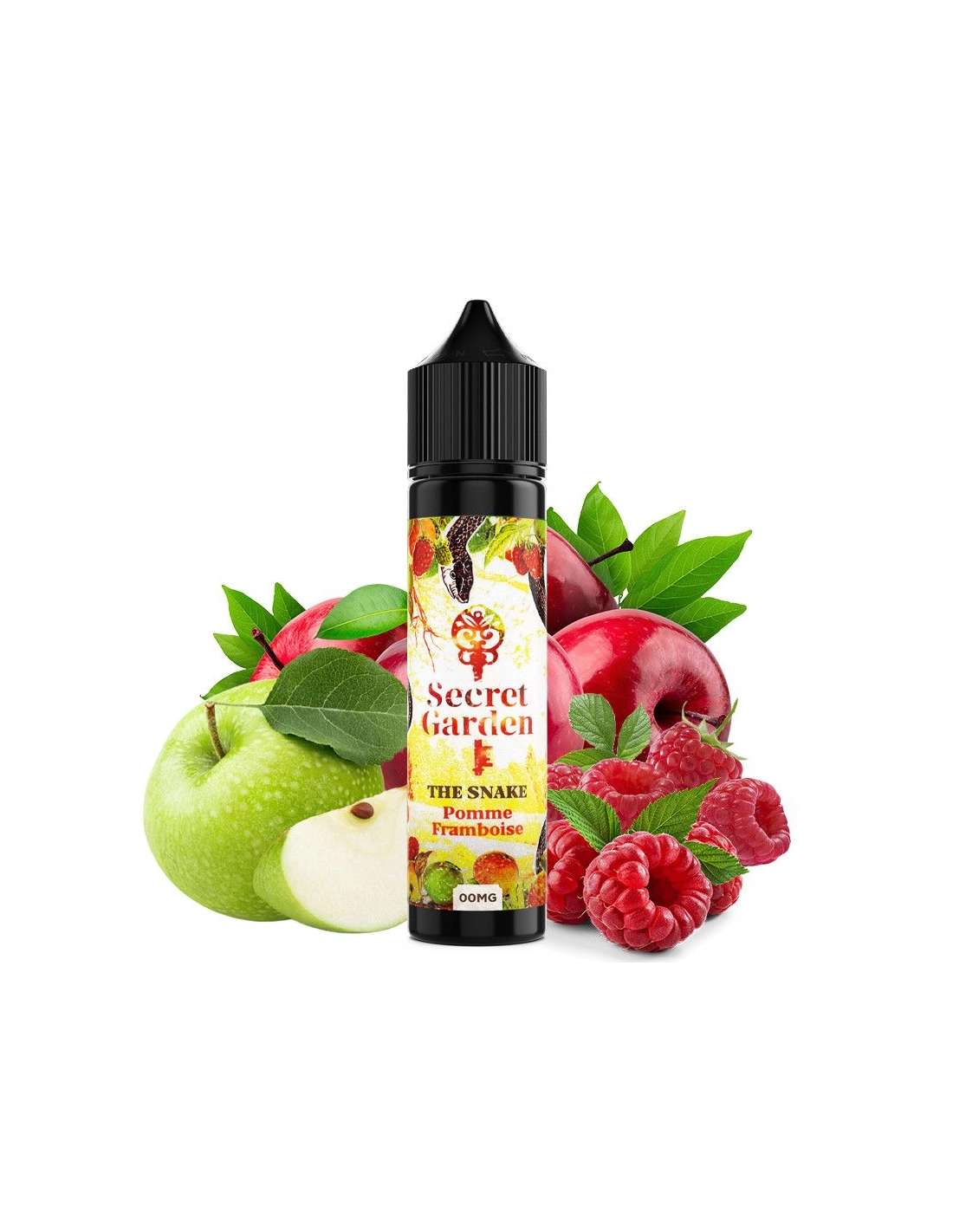 L'e-liquide The Snake de la gamme Secret Garden des fabricants français de Secret's Lab, ce sont des saveurs fruitées de pomme et de framboise.