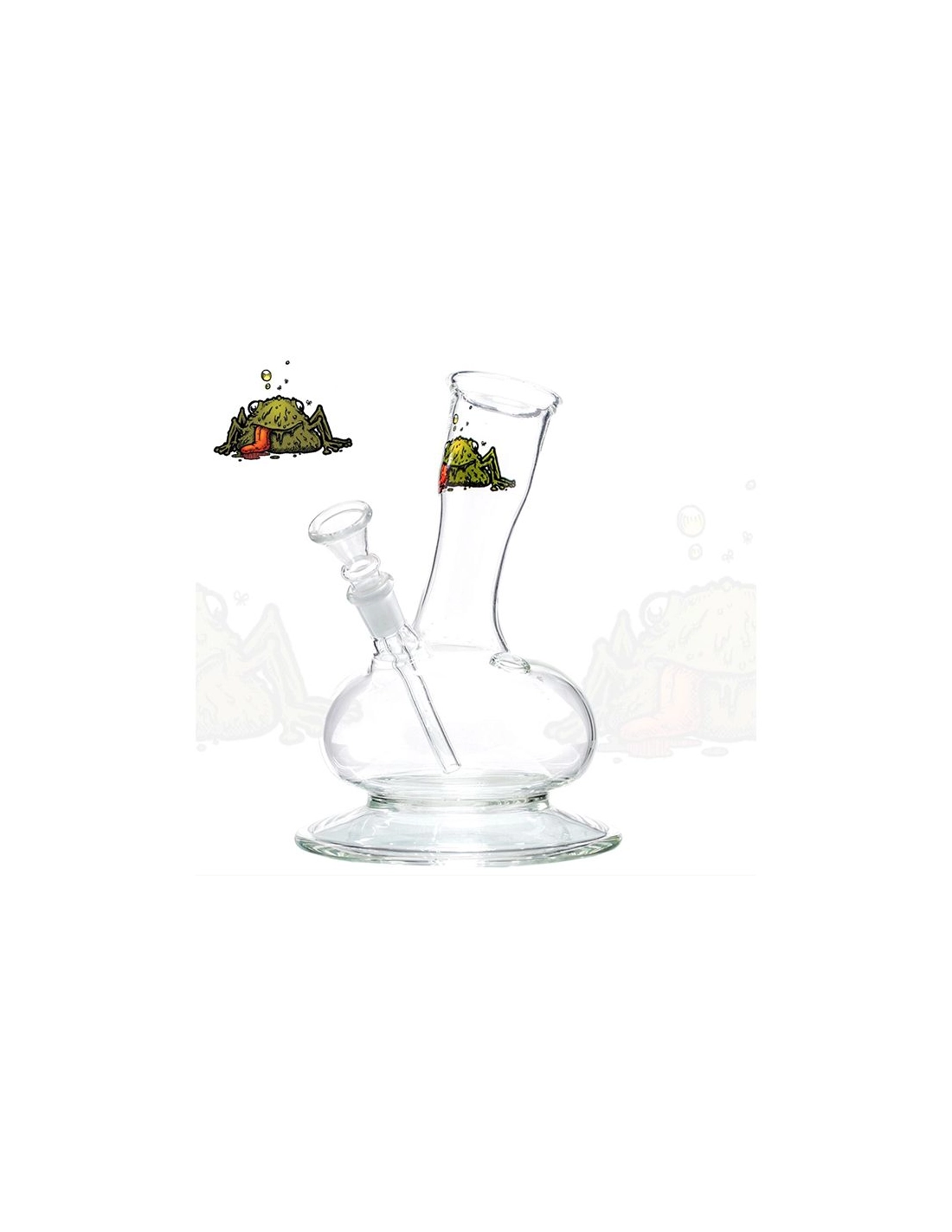 Bong en verre d'une hauteur de 22cm et une embouchure de 45mm avec une grenouille défoncé sur l'avant. Ce bong à un foyer de 14.5mm de diamètre et permet un tirage facilité.