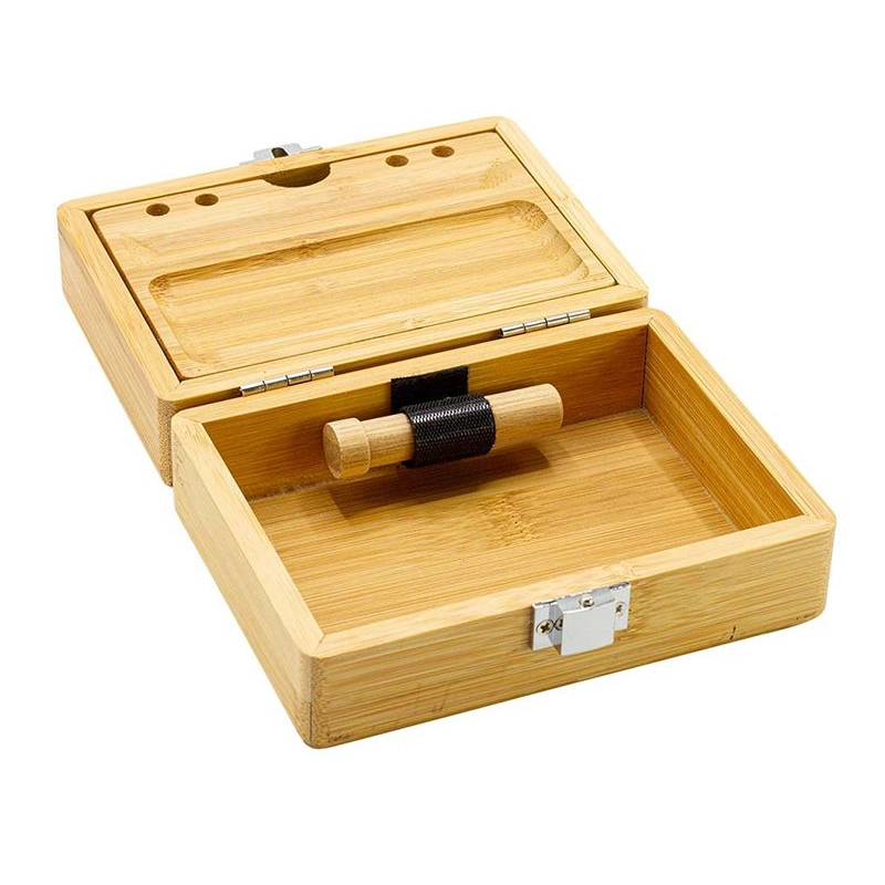 Boîte de 14 x 10 x 6cm en bambou de marque G Rollz utile pour ranger votre matériel tel que grinder, papier à rouler, filtres et encore bien d'autres accessoires.