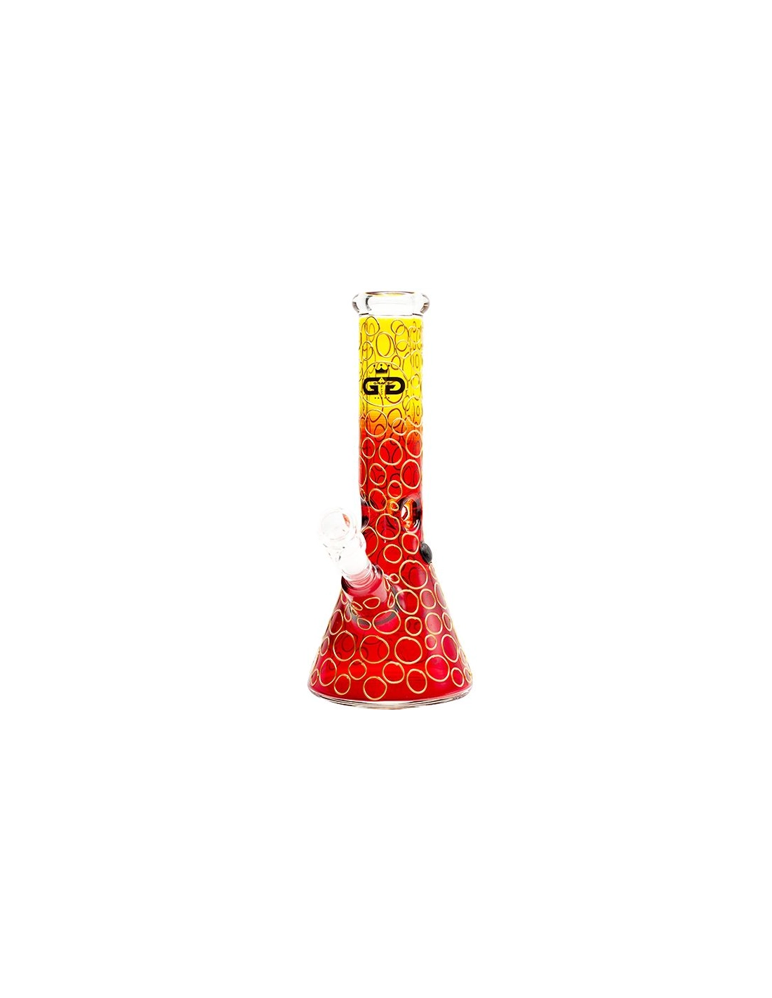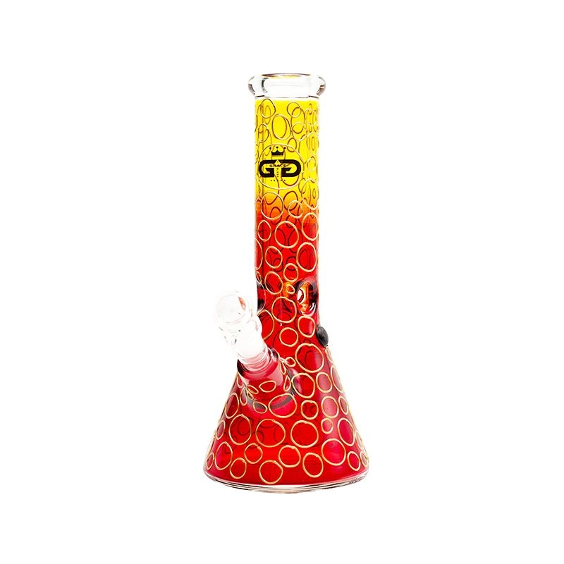 Bong en verre borosilicate de 7mm d'épaisseur de la marque Grace Glass d'une hauteur de 32cm avec un magnifique mélange de rouge et de jaune avec des anneaux décoratifs.