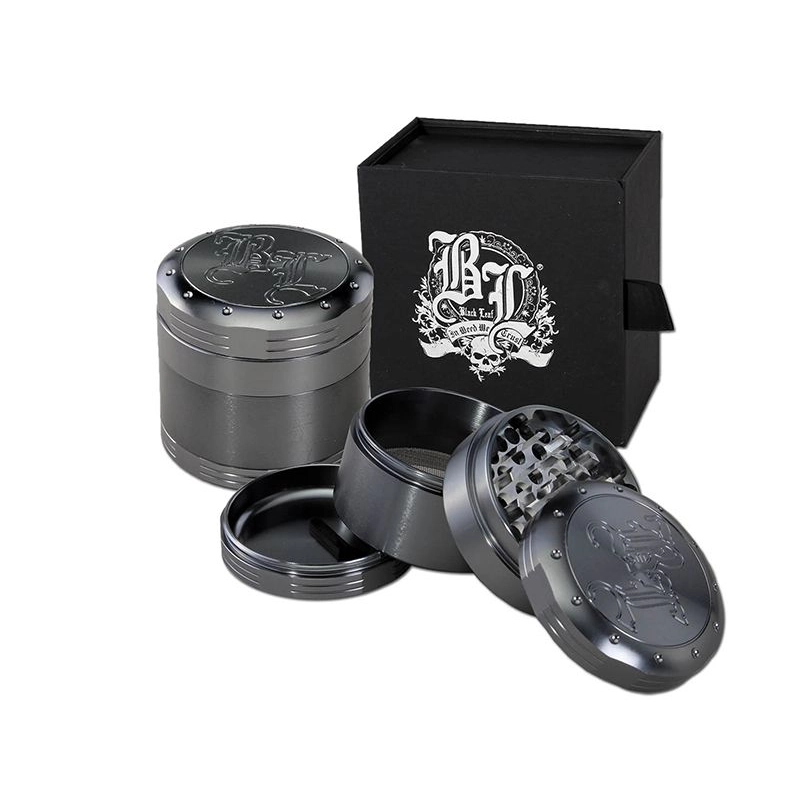 Grinder de marque Black Leaf avec des dents en aluminium anodisé de haute qualité pour broyer finement votre CBD préféré.