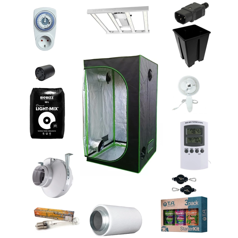 Kit de culture indoor d'une dimension de 1m2 avec un panneau LED Mars Hydro Smart FC-E 3000 ainsi que tout le matériel pour cultiver 16 plantes en intérieur.
